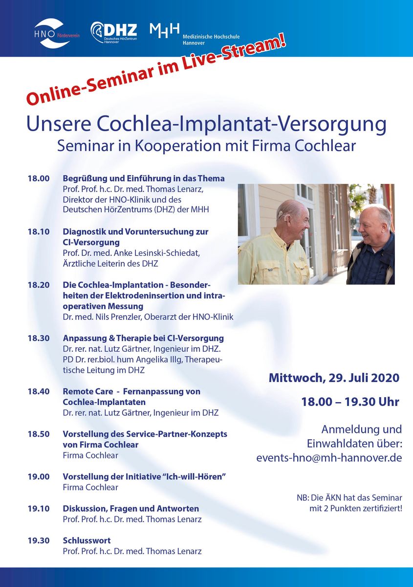 Online-Seminar im Live-Stream für Niedergelassene HNO-Ärzte und Akustiker! Anmeldung und Einwahldaten über events-hno@mh-hannover.de